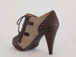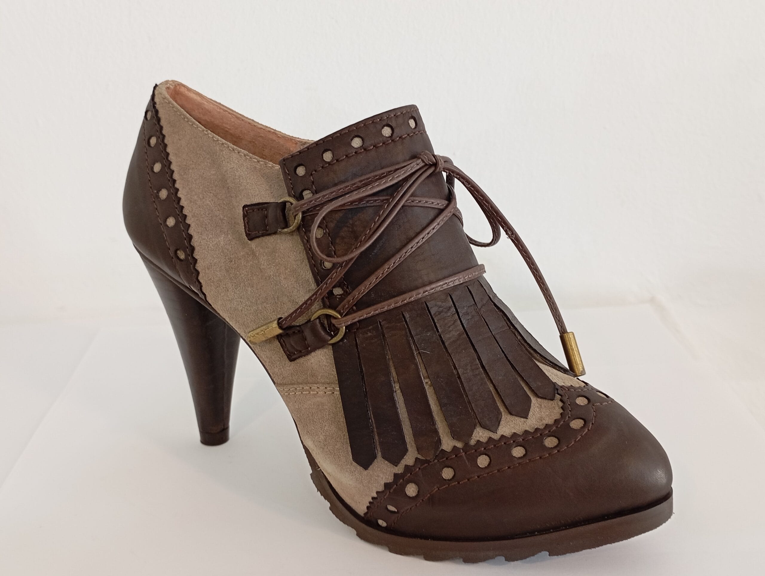 ZAPATO ABOTINADO COR FLECOS Y ATADO DE CORDONES COMBINADO EN PIEL MARRON CHOCOLATE Y ANTE ARENA.