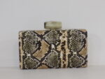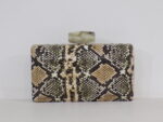 BOLSO DE MANO GRABADO DE SERPIENTE MARRON, CON CADENA PARA COLGAR