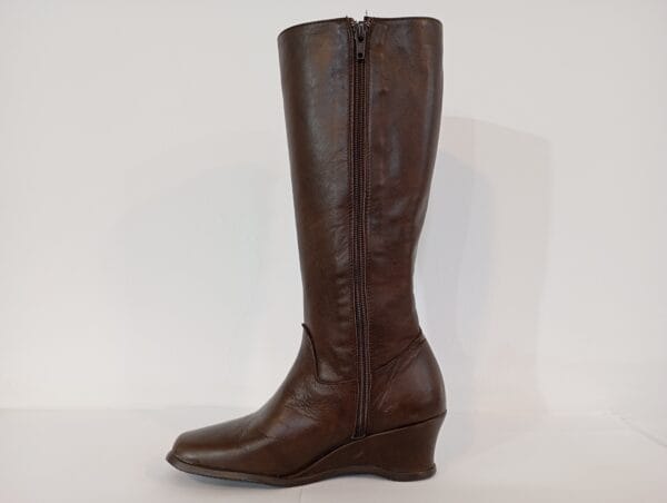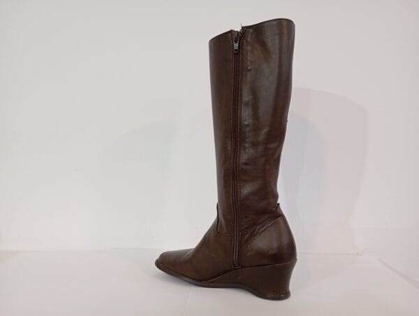 BOTA DE CUÑA EN PIEL MARRON CON ADORNO DE HEBILLAS.