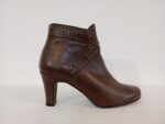 BOTIN EN PIEL MARRON CHOCOLATE CON ADORNO DE TACHUELAS Y TACON MEDIO .