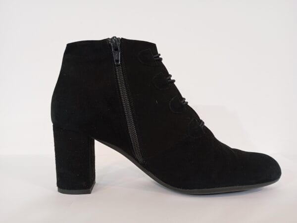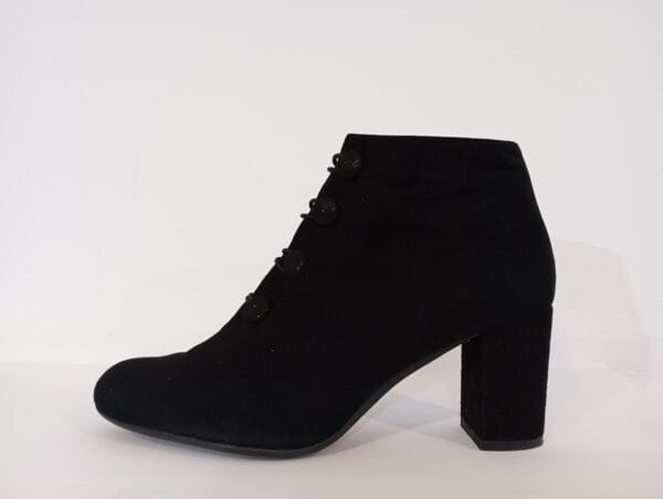 BOTIN CORTO EN ANTE NEGRO CON ADORNO DE BOTONES Y CREMALLERA LATERAL CON TACON GORDO.