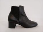 BOTIN EN PIEL NEGRA CON ELASTICOS EN LA PARTE TRASERA AL TONO CON TACON CUBANO BAJO.