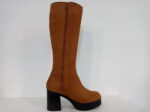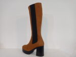 BOTA EN PIEL COLOR CUERO CON ELASTICO LATERAL AJUSTABLE CON TACON GORDO Y PLATAFORMA