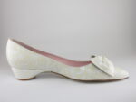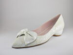 ZAPATO DE NOVIA CON TACÓN BAJO DE PIEL NACARADA CON BROCADO ARENA