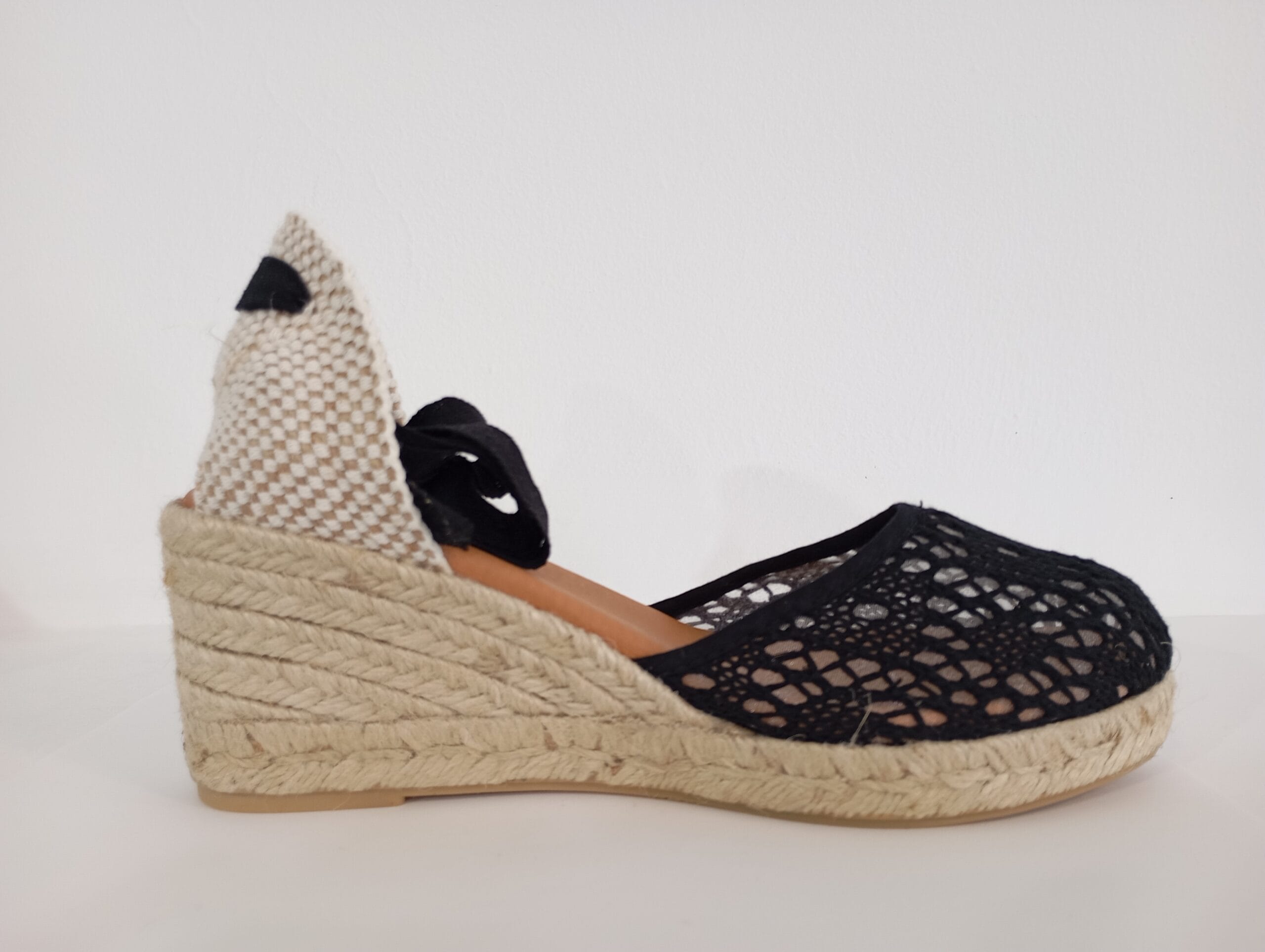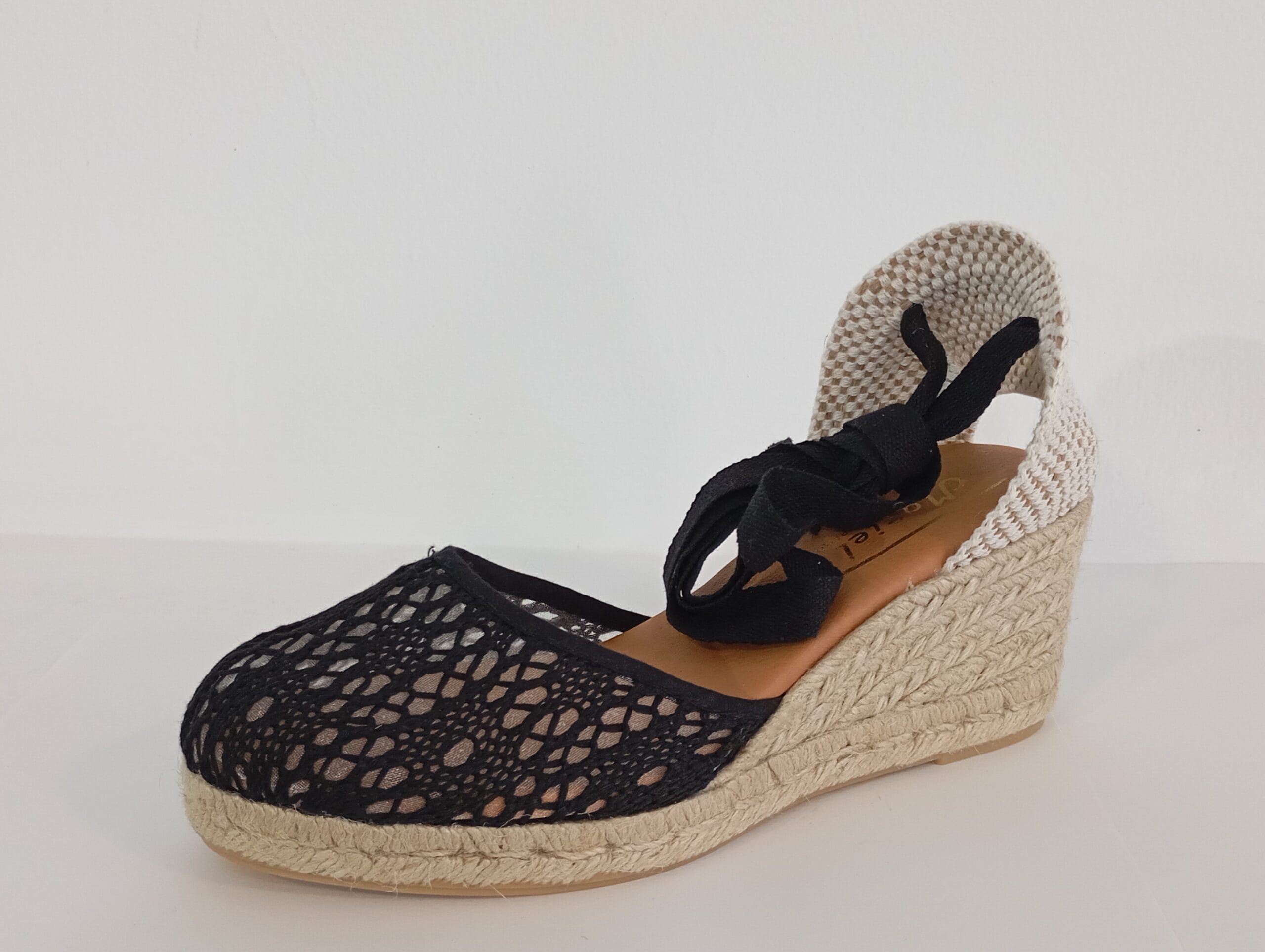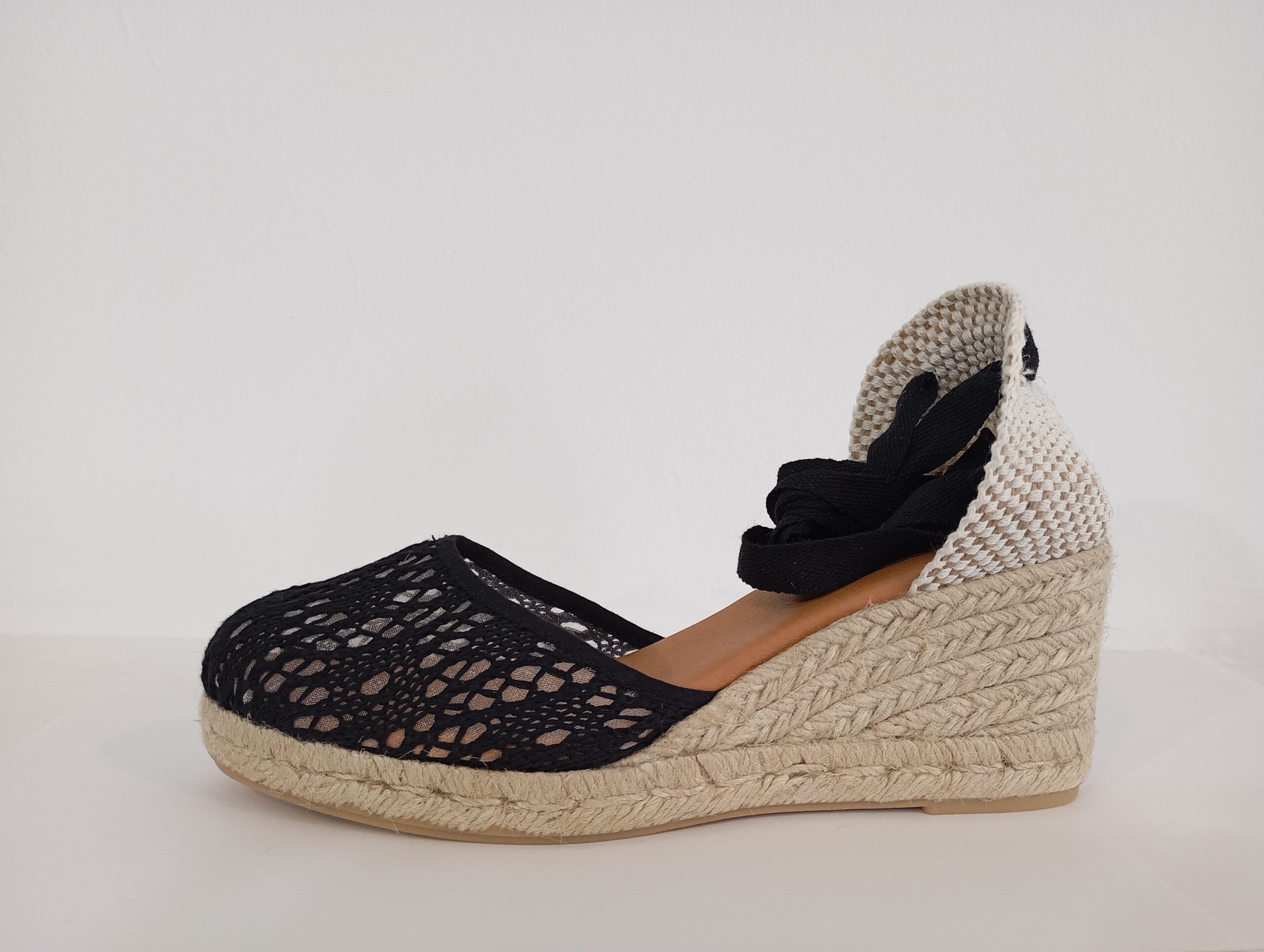 CUÑA DE ESPARTO EN REJILLA DE ALGODON EN NEGRO CON CINTA Y PLANTA DE GEL.