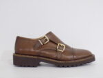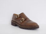 ZAPATO ABOTINADO DE PIEL MARRON CON SUELA DE GOMA