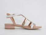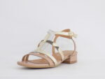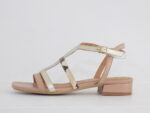 SANDALIA DE PIEL COMBINADA EN TAUPE, ORO Y PLATA