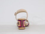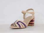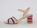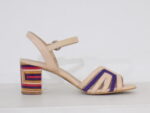 SANDALIA DE PIEL NUDE Y ANTE MORADO CON TACÓN MULTICOLOR