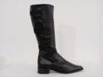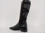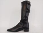 BOTA PLANA DE PIEL NEGRA CON ADORNO DE ELASTICOS EN LA PARTE DE ATRAS .
