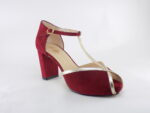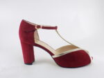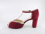 SANDALIA DE ANTE BURDEOS CON PULSERA EN FORMA DE T, PLATAFORMA INTERIOR