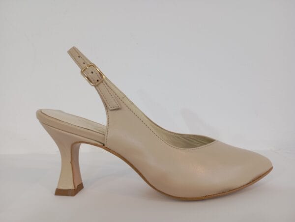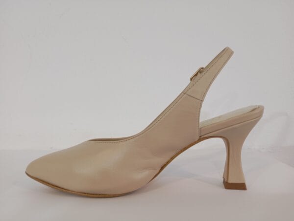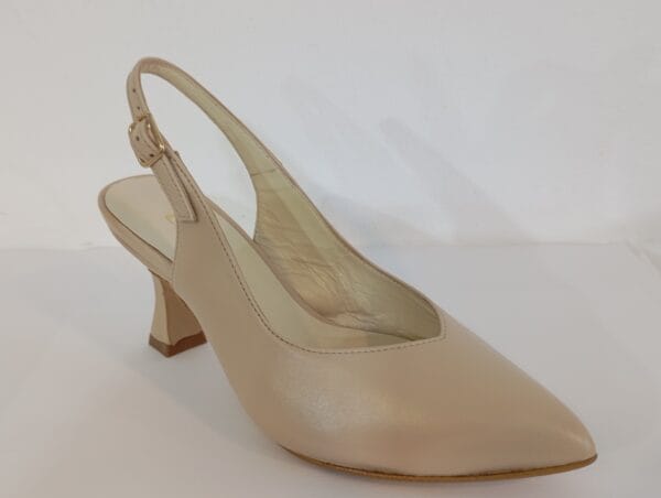 ZAPATO SALON DESTALONADO CON CARA EN PICO CON PLATAFORMA INTERIOR EN PIEL BEIGE CON TACON DDE CARRUCHA.