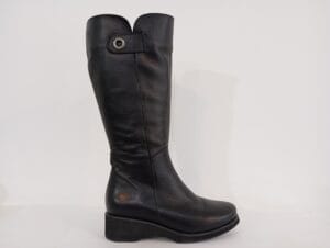 SALON PUNTA REDONDA EN PIEL NEGRA CON TACON ALTO.