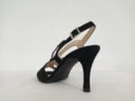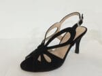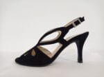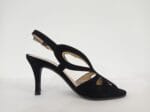 SANDALIA DE ANTE NEGRO EN FORMA DE MARIPOSA CON TACON FINO.